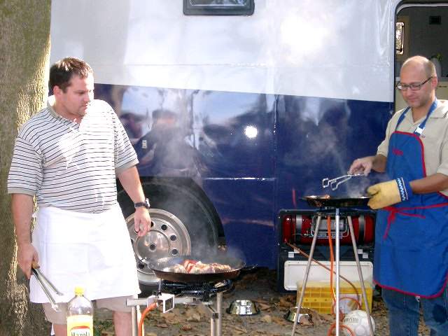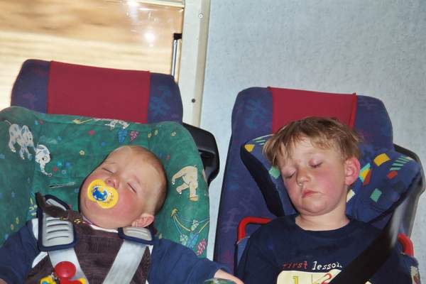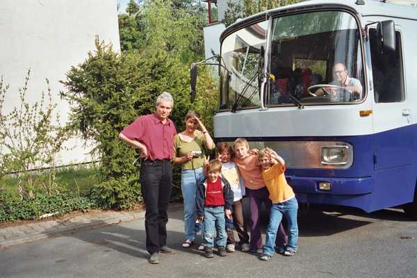 | Busausfahrt Ostern 2003 / Abendstimmung | Unsere Söhne erliegen einem Schwaecheanfall :-) auf der Heimfahrt | Ein Gruppenfoto mit Beas beim Besuch in Darmstadt, man beachte der Fahrer wartet bereits am seinem Arbeitsplatz | |||