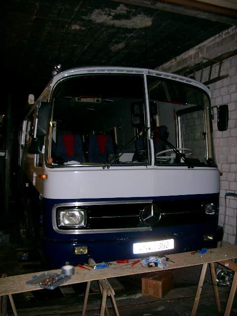 11.03.2003 Jetzt ist der Bus in der Werkstatt um eine schnelle Hinterachse