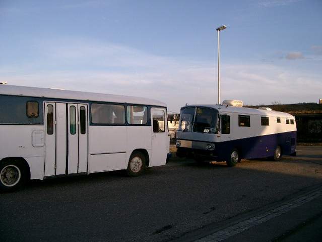 | 2 Mercedes Busse O 302 prallen aufeinander, Peter aus Hamburg hat in Bayern einen O 302 gekauft und auf dem Heimweg haben wir uns an der Autobahn getroffen... | links ein Baujahr 1974 und rechts ein 1969 |