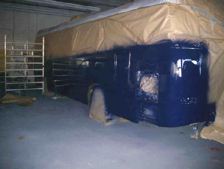 So, nun ist er weitgehenst fertig lackiert, na ja das Hellgrau hat in Verbindung mit den Dunkelblau einen leichten blauen Stich, aber es ist ok ( Wer hat gerade gelacht )